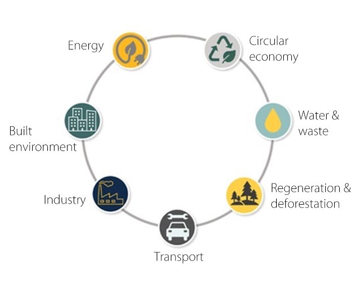 Decarbonising energy production and use. Moving to renewables and alternative sources. Upgrading grid and storage capacity to hold clean energy and improving access in rural areas.